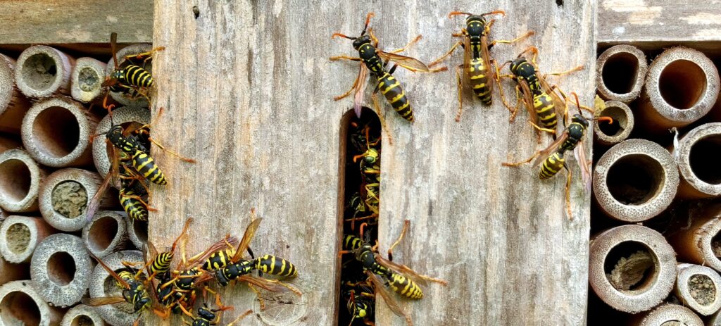 C’est souvent la période où l’on repère une activité “isolée” : un insecte qui inspecte un endroit, des allées et venues ponctuelles près d’un angle de toiture, d’un coffret, d’un abri. Les nids peuvent être petits et peu visibles, parfois en début de construction.